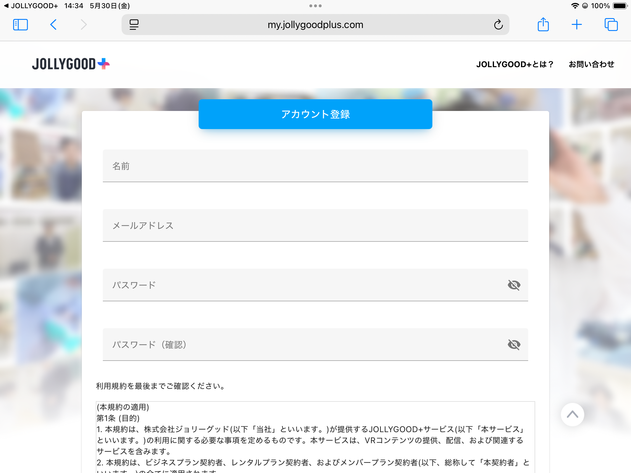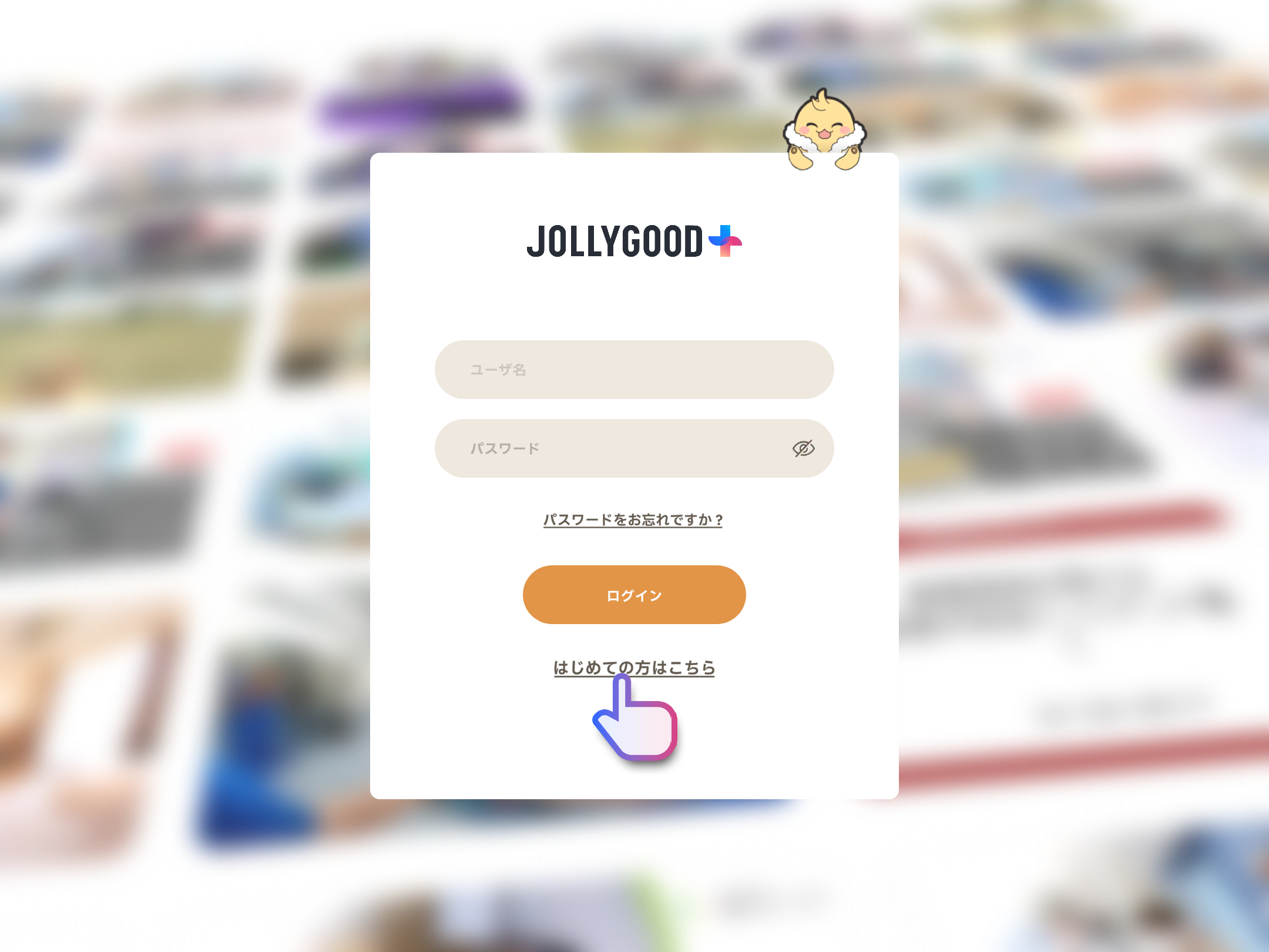 「JOLLYGOOD+」アプリを立ち上げ「はじめての方はこちら」をタップ