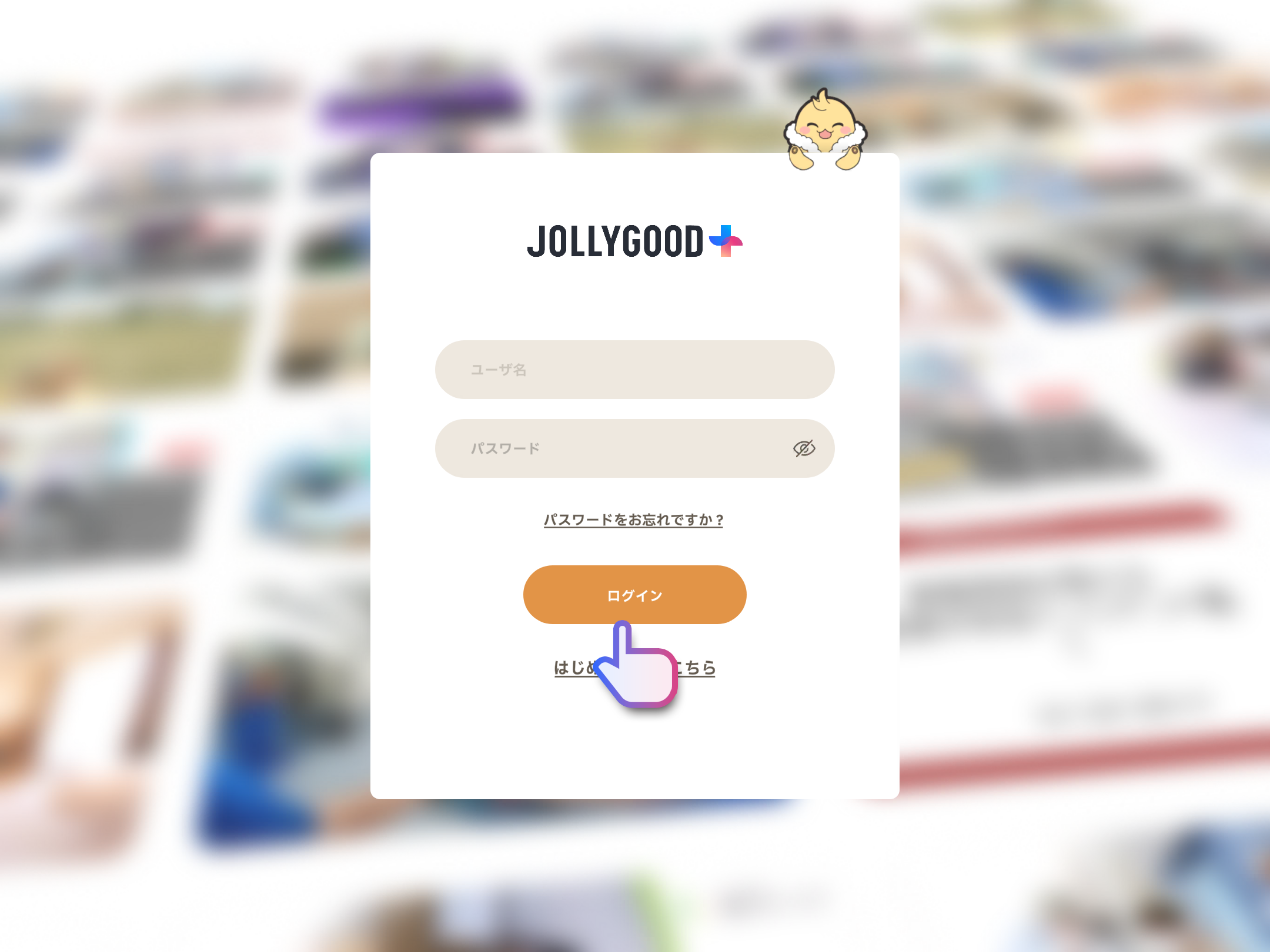 「JOLLYGOOD+」アプリを立ち上げ登録したアカウントのユーザー名・パスワードを入力し「ログイン」をタップ