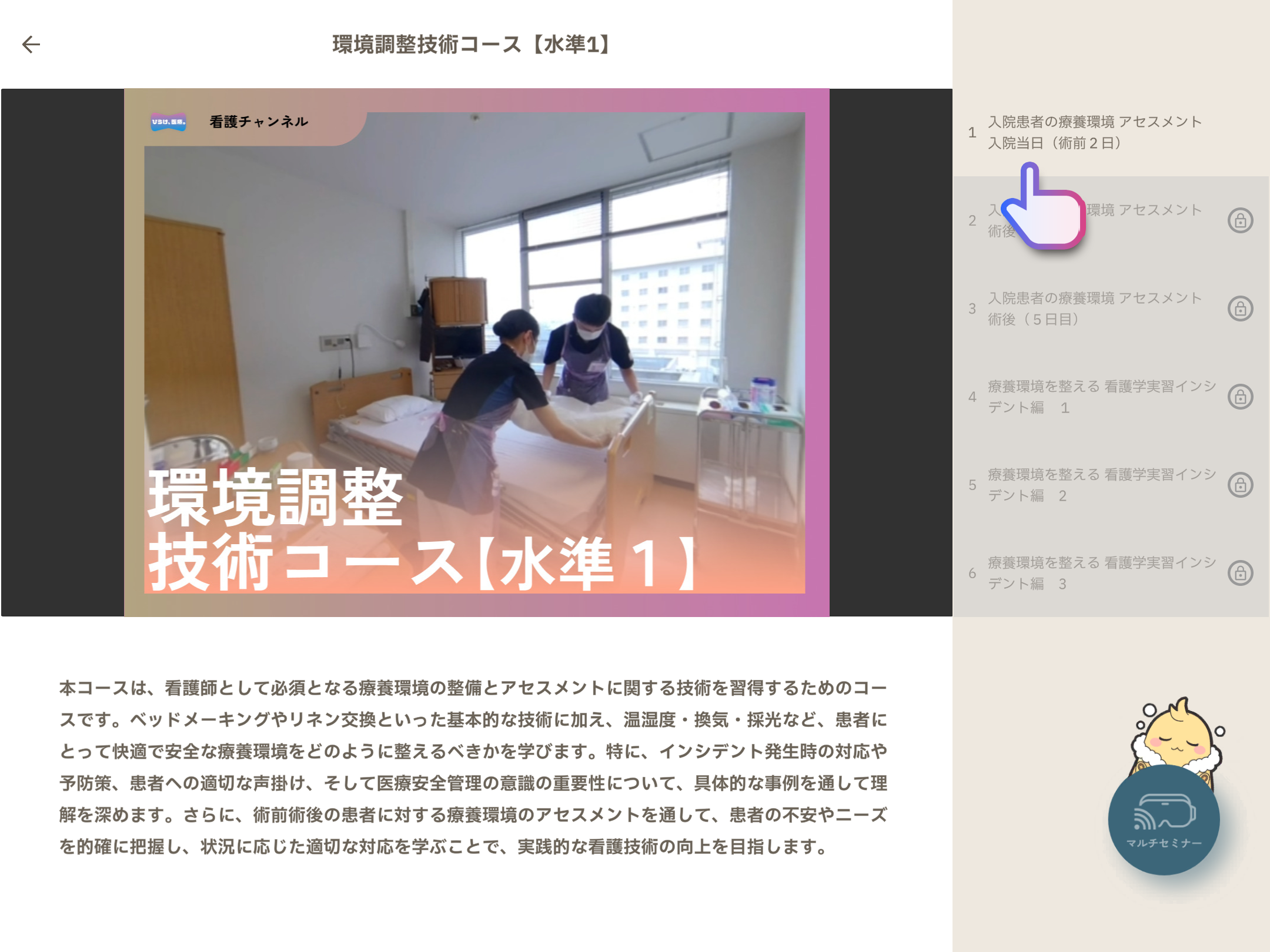 コース詳細で右の無料で閲覧できるタイトルをタップ